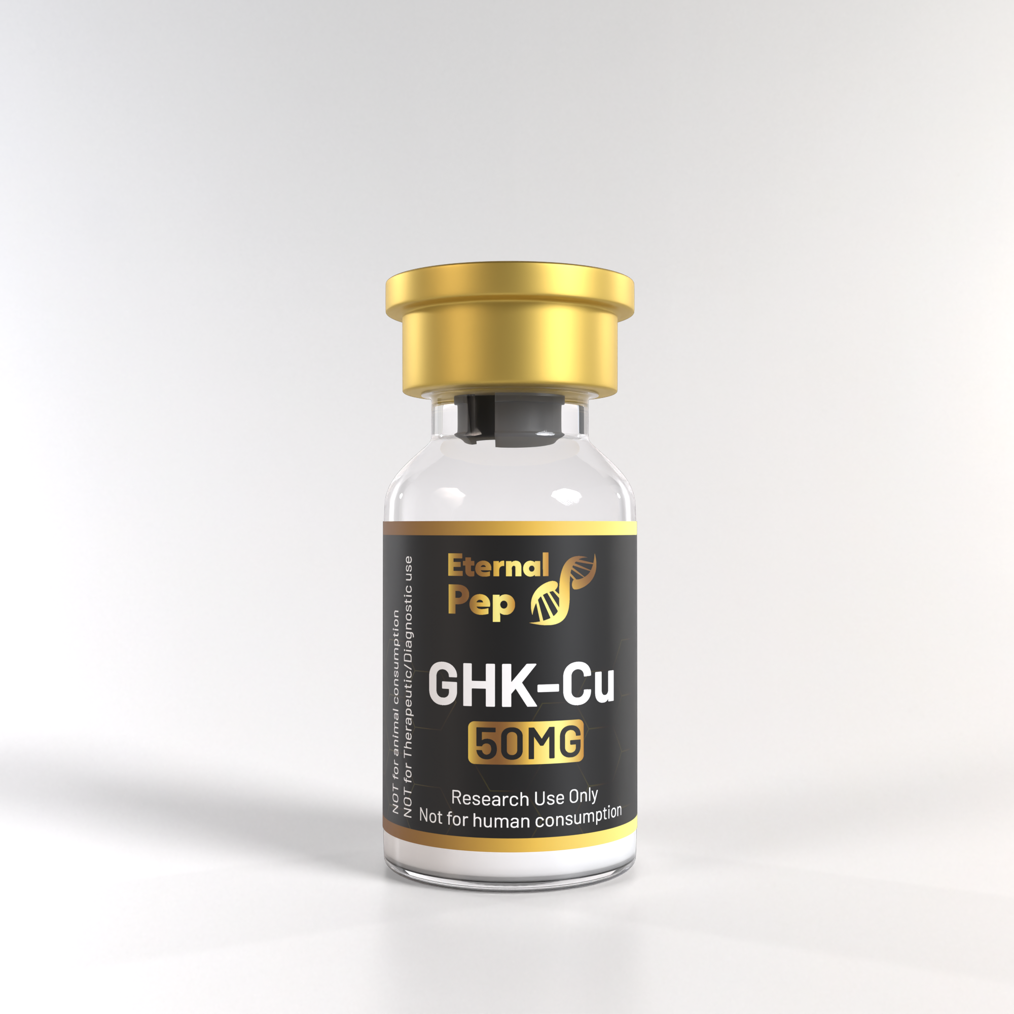 GHK-Cu is a synthetic copper-binding tripeptide composed of glycine, histidine, and lysine, formulated for research and laboratory use. This peptide complex is widely studied for its ability to bind copper ions and its potential role in cellular communication and biochemical signaling pathways.